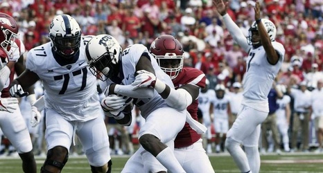 Sophomore running back Sewo Olonilua scored two touchdowns, Kyle Hicks and Darius Anderson each scored one, and the defense collected three sacks in a dominating performance Saturday for a 28-7 victory at Arkansas that sent the Horned Frogs to a 2-0 start.