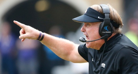 TCU head coach Gary Patterson directs his team during the Oklahoma Sooners vs. the TCU Horned Frogs NCAA football game at Amon G. Carter Stadium in Fort Worth, Texas on Saturday, October 20, 2018. (Louis DeLuca/The Dallas Morning News)