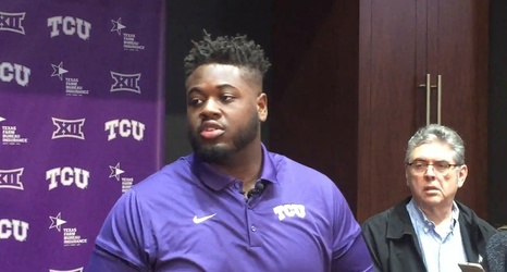 TCU center Kellton Hollins met with reporters on Tuesday as the Frogs prepare to face No. 9 Oklahoma. Hollins said the Frogs are going to stick to their style of play vs. OU.