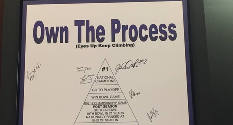 There’s a can’t-miss sign in the team’s meeting room that proclaims “Own The Process (Eyes Up Keep Climbing).