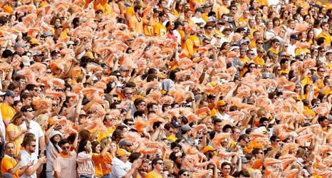 KNOXVILLE, TN - SEPTEMBER 09: Tennessee Volunteers fans cheer during the first half of the game against the Indiana State Sycamores at Neyland Stadium on September 9, 2017 in Knoxville, Tennessee. (Photo by Michael Reaves/Getty Images)