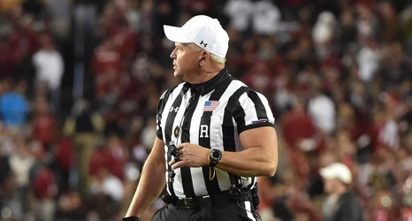 In the midst of the scrum, a flag went up from Big 12 referee Mike Defee — starting at the one-hour mark before the game kicks off, officials have the discretion to call a penalty in such situations.