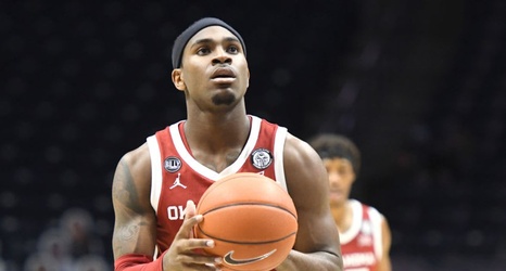 CINCINNATI, OH - DECEMBER 09: De'Vion Harmon #11 of the Oklahoma Sooners takes a foul shot during a college basketball game against the Xavier Musketeers on December 9, 2020 at the Cintas Center in Cincinnati, Ohio. (Photo by Mitchell Layton/Getty Images)
