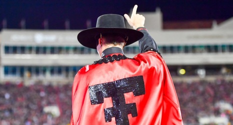 LUBBOCK, TX - OCTOBER 22: The Texas Tech Red Raiders mascot "Masked Rider" during the game against the Oklahoma Sooners on October 22, 2016 at AT&T Jones Stadium in Lubbock, Texas. Oklahoma won the game 66-59. (Photo by John Weast/Getty Images)