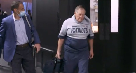 It's unclear if Belichick was wearing a single, two-tone gray and blue hoodie or a cropped gray sweatshirt over a blue hoodie. The pant legs rolled up to completely different lengths also boosted the outfit and sparked an intense reaction on social media.