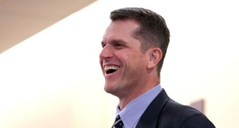 Jim Harbaugh hangs out in Michigan student section