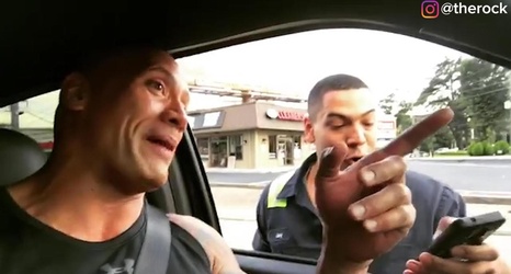 Fan stops truck in the middle of the street to take a picture with The Rock