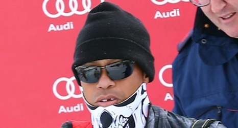 Masked, toothless Tiger Woods surprises girlfriend Lindsey Vonn