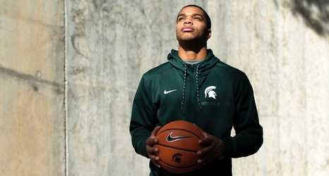 I find myself, unexpectedly, at an informal Bible study in a nondescript Michigan State dorm room. I squeeze onto a couch beside two or three earnest-looking college kids. I think the spot I've claimed may have actually belonged to Spartans star sophomore forward Miles Bridges. There was this awkward thing that happened when I first arrived: I picked the seat out, plugged in my rapidly dying phone near it, then went to get some water.