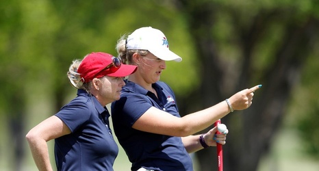Tulsa freshman Greta Bruner leads the individual race by one stroke over Kansas' Ariadna Fonsea. Bruner carded rounds of 71 and 69 Monday for an even-par 140, while Fonseca is one-over par at 141.
