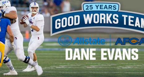 University of Tulsa senior quarterback Dane Evans was one of 24 college football players named to the 2016 Allstate AFCA Good Works Team®, one of the most coveted off-the-field honors in college football, it was announced today by the Allstate Insurance Company and the American Football Coaches Association (AFCA).