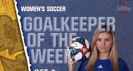 The senior goalkeeper from Dallas, Texas, logged all 180 minutes in goal for Tulsa on the week. She picked up 12 saves and earned a shutout over Temple (1-0) and UConn (2-0).