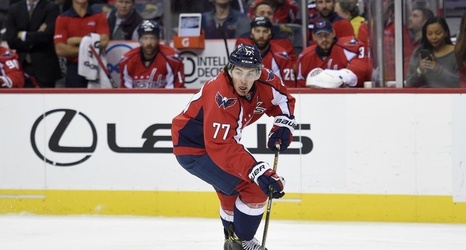 During drills, Oshie gathered a puck and drove to the net, colliding with goaltender Braden Holtby. Oshie bounced up from the collision no worse for wear.