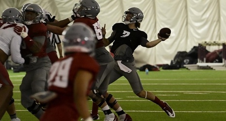 PULLMAN, Wash. (Aug. 14, 2021) - Washington State Football held its first scrimmage of preseason camp Saturday, working through 70-plus plays at the Indoor Practice Facility.
