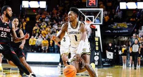 Tyson Etienne's last-second three from the center court logo lifted Wichita State to a 60-57 season-opening victory over Jacksonville State at Charles Koch Arena.