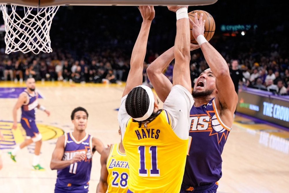LOS ANGELES (AP) — Phoenix Suns guard Devin Booker was ruled out of Monday night’s game against the Los Angeles Lakers in the first half with a right groin injury.