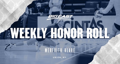 NEW YORK - Senior Meredith Klare was named to the BIG EAST Weekly Honor Roll for her on-court performance last week. She earns weekly honors for the second straight week and third time this season.