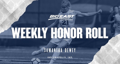 NEW YORK – Xavier women's soccer redshirt junior Samantha Dewey added four points to her team-high point total last week, earning a spot on the BIG EAST Weekly Honor Roll, the conference office announced on Monday.